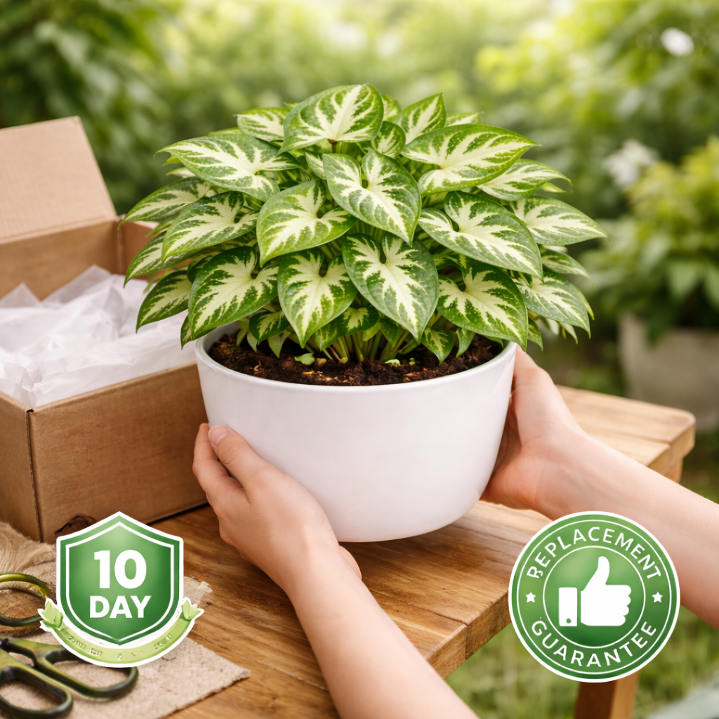 We offer a 10‑day replacement guarantee for any transit damage or plant health issues. Share an unboxing video/picture within 10 days to claim replacement.